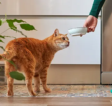 El alimento seco debería estar disponible todo el día y por la noche se puede sumar una porción de alimento húmedo como Guisados Raza.